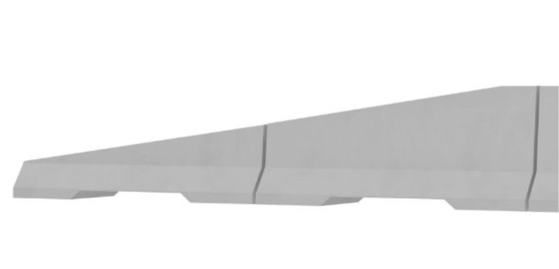 Elementy wykonano z betonu C30/37 przystosowanego do pracy na zewnątrz: mrozoodporność F150, nasiąkliwość ≤ 5%. Zestaw obejmuje 2 elementy po 2000 mm (łącznie 4000 mm) o wysokości 810 mm i szerokości podstawy 550 mm.