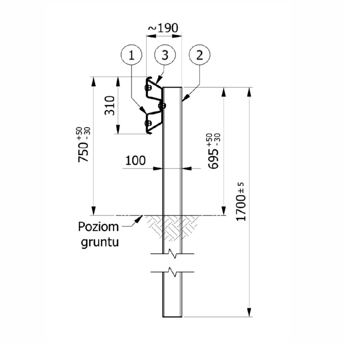 - Słupek (konfiguracja odcinków standardowych: rozstaw co 4,00 m)