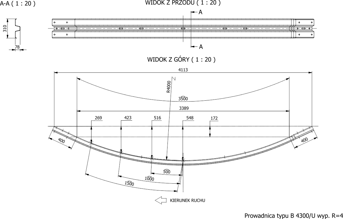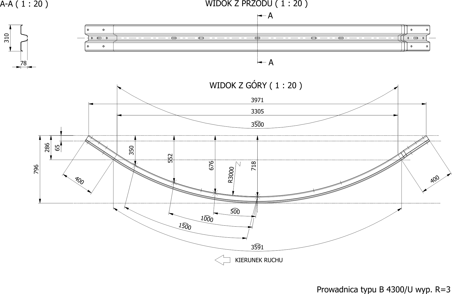 Dobór promienia umożliwia dopasowanie prowadnicy do geometrii łuku i założeń projektu.