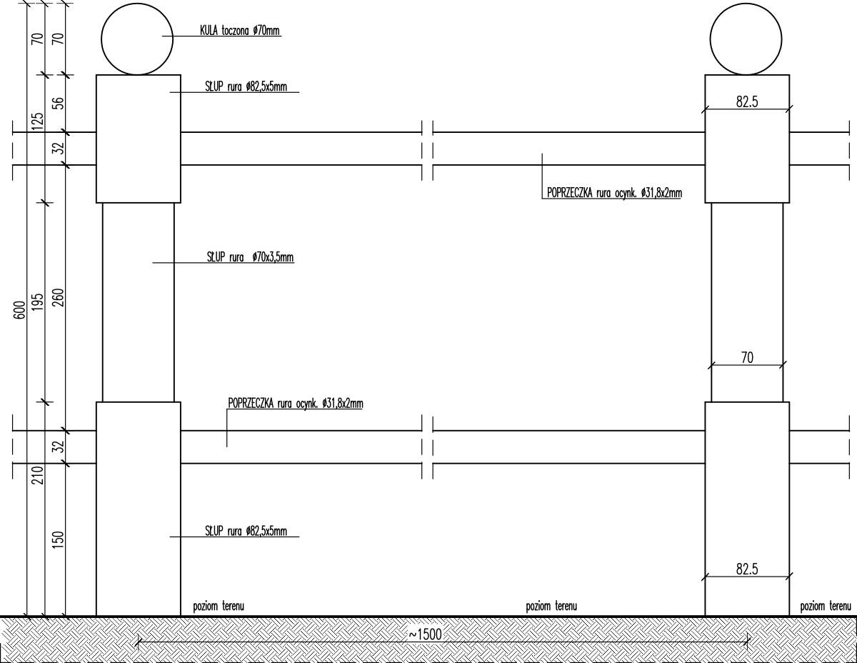 • Poprzeczki są montowane w słupkach – nie przewiduje się łączenia poprzeczek pomiędzy słupkami.