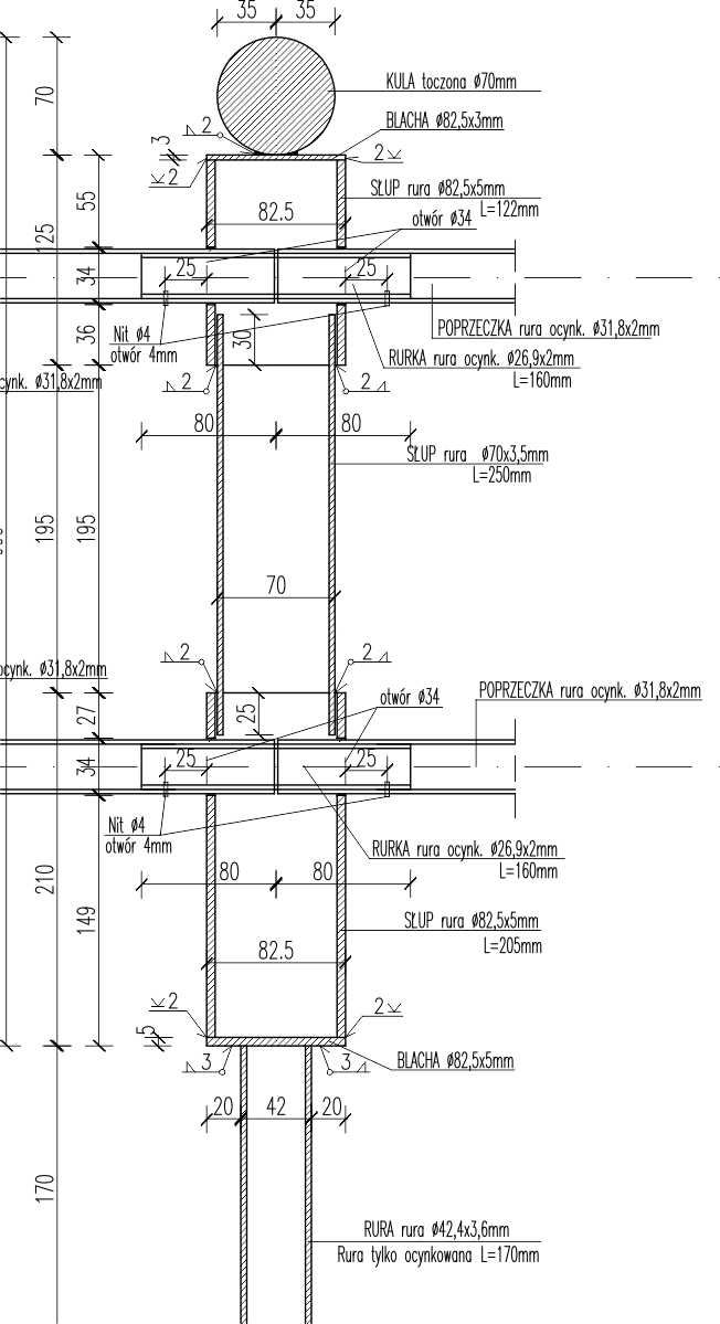 • Przeznaczenie: słupek do podwójnej poprzeczki