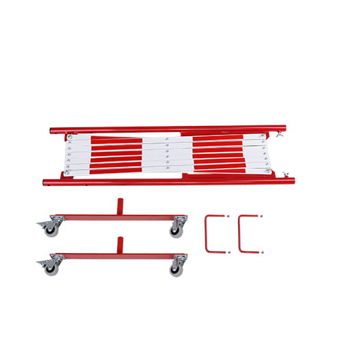 BARIERA ROZCIĄGANA – harmonijkowa czerwono-biała, z kółkami, wolnostojąca L-3600 mm