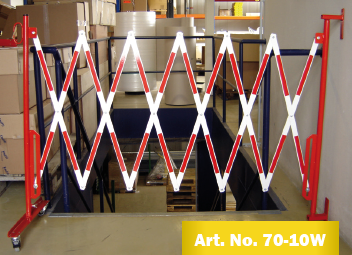 BARIERA ROZCIĄGANA – harmonijkowa czerwono-biała, z kółkami, mocowana do ściany L-3600 mm