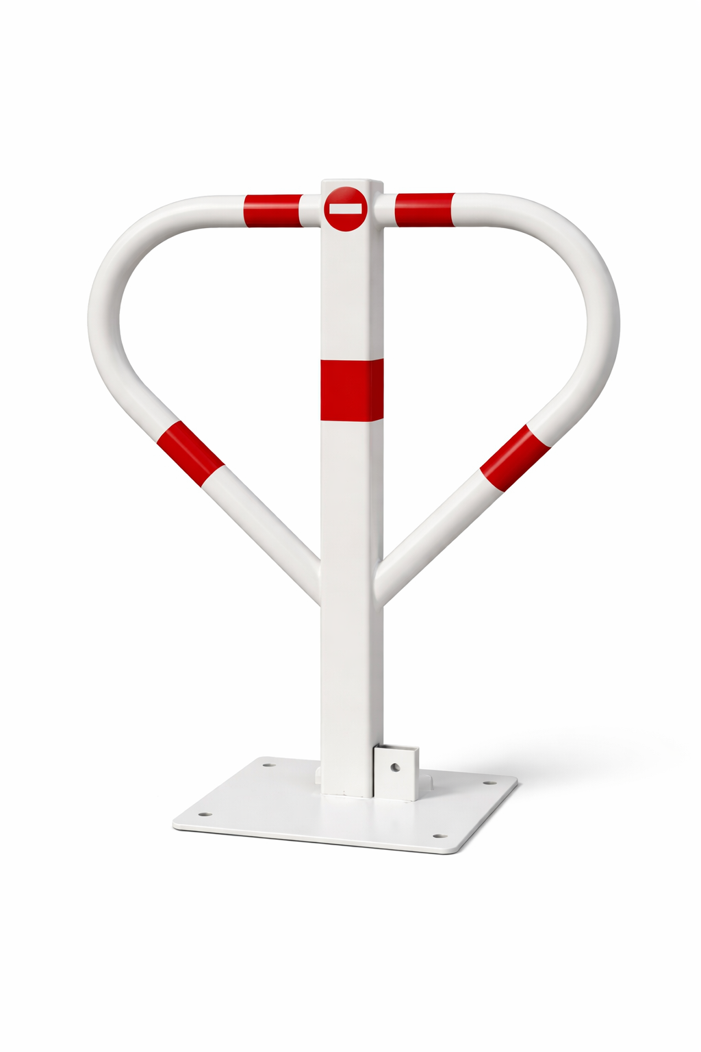 Konstrukcja po podniesieniu tworzy widoczną barierę przed miejscem postojowym, a po odblokowaniu i złożeniu pozwala normalnie korzystać ze stanowiska.