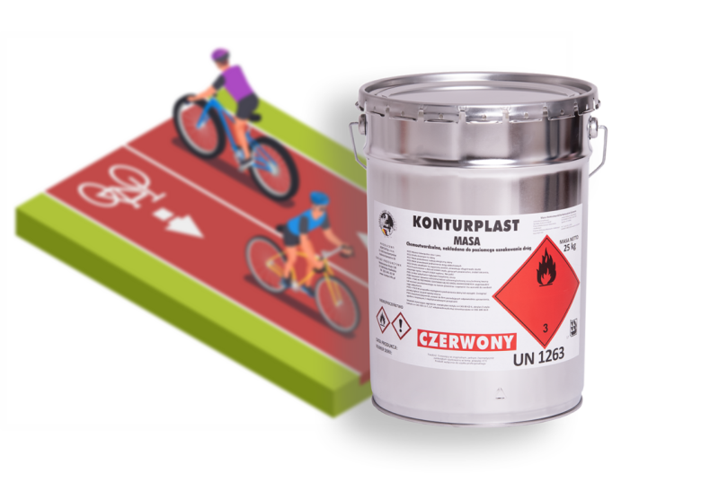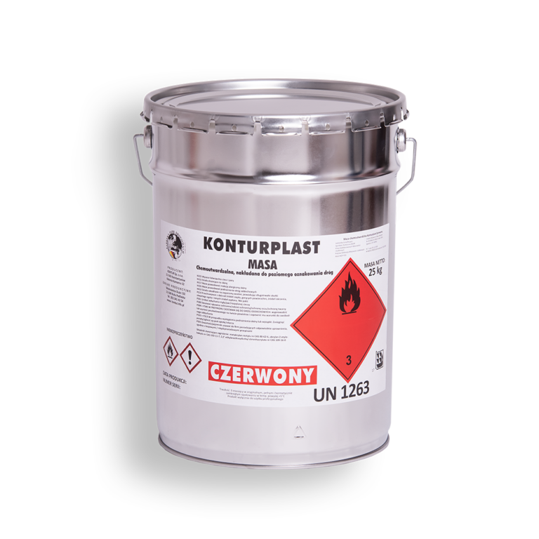 Masa chemoutwardzalna KONTUR (czerwona) to dwuskładnikowy „plastic” stosowany na zimno do grubowarstwowego oznakowania poziomego. Sprawdza się szczególnie tam, gdzie oznakowanie jest intensywnie eksploatowane i narażone na ścieranie.