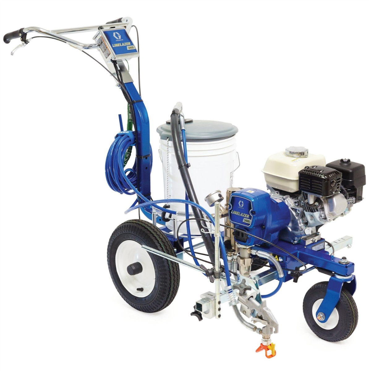 Malowarka drogowa LineLazer 3400 została przygotowana do wykonywania oznakowania przy użyciu 1 pistoletu na małych parkingach, przy minimarketach oraz na terenach szkół, parków i obiektów rekreacyjnych. To urządzenie przeznaczone do pracy na asfalcie i betonie, zaprojektowane z myślą o precyzyjnym prowadzeniu linii i wygodnej obsłudze w codziennej eksploatacji.