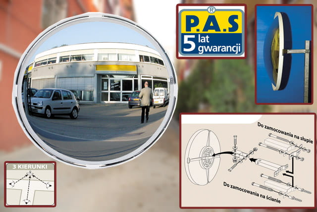 Dzięki specjalnej wypukłości zapewnia szeroki kąt widzenia i poprawia bezpieczeństwo przy minimalnej liczbie punktów montażowych.