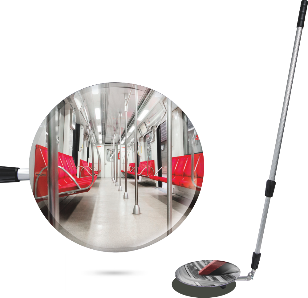 Lustro zamocowane na teleskopowym wysięgniku umożliwia obserwację trudno dostępnych miejsc bez konieczności bezpośredniego schylania się lub wchodzenia w kontrolowaną strefę. Ułatwia to prowadzenie przeszukań i oględzin w warunkach codziennej pracy kontrolnej.