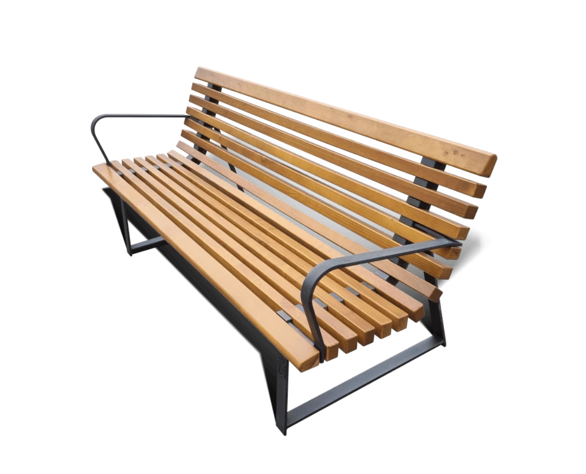 Ławka warszawska stalowo-drewniana z oparciem i podłokietnikami