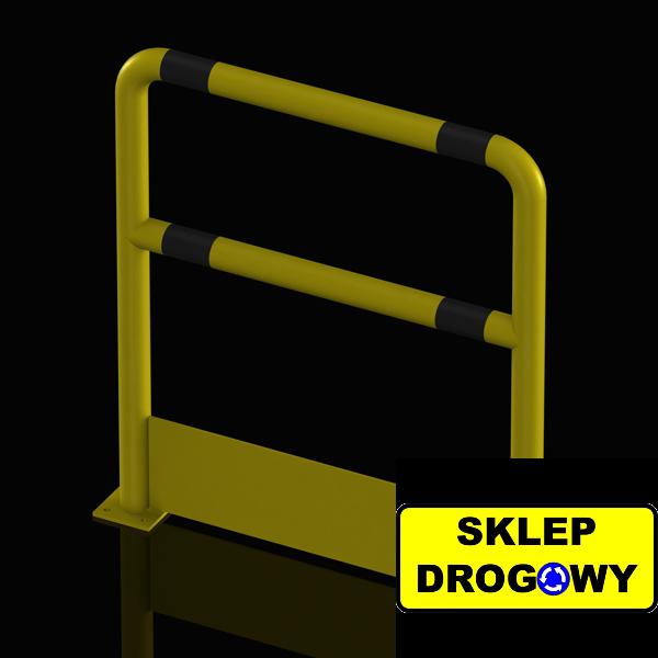 Barierka oddziela ruch pojazdów i wózków od chronionych elementów oraz przejmuje energię uderzenia. Dzięki stabilnym podstawom z blachy o grubości 8 mm i otworom montażowym zapewnia trwałe zakotwienie w podłożu i bezpieczną eksploatację.