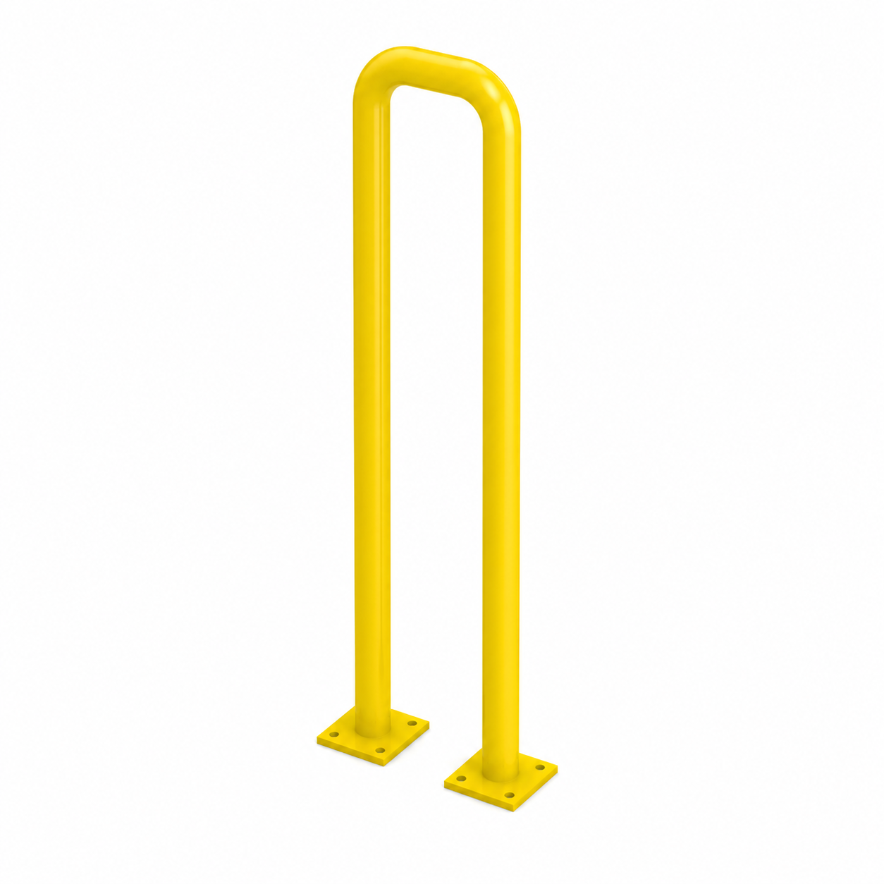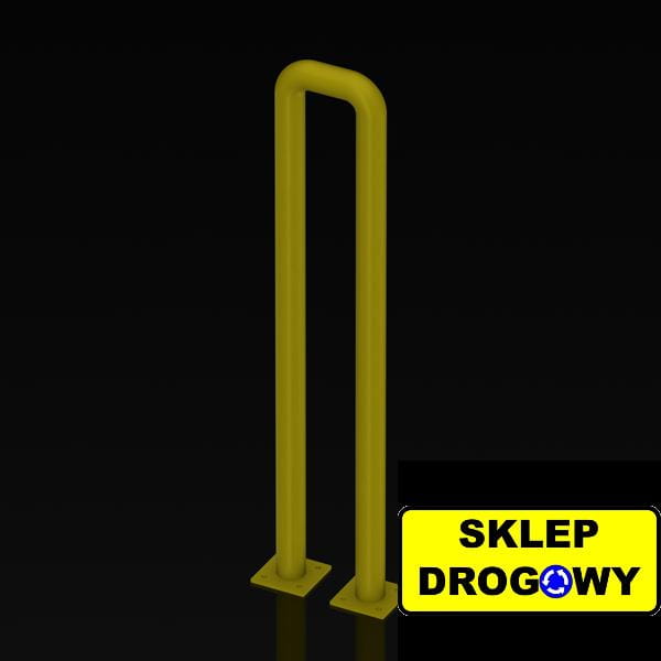Odbojnica wykonana jest z rury stalowej o średnicy 60,3 mm, co zapewnia dobrą odporność na uderzenia przy zachowaniu kompaktowej formy. Konstrukcja oparta jest na dwóch nogach zakończonych podstawami o wymiarach 120x120 mm i grubości 8 mm. Każda podstawa posiada 4 otwory montażowe o średnicy 10,0 mm, co umożliwia trwałe i stabilne przykręcenie do podłoża.