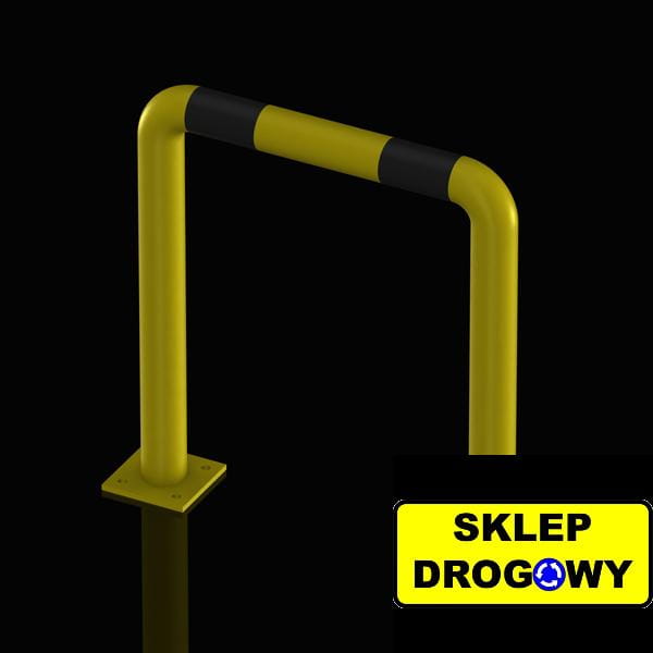 Powierzchnia odbojnicy zabezpieczona jest lakierem proszkowym w kolorze żółtym (RAL 1003), co zwiększa odporność na korozję i warunki eksploatacyjne. Czarne pasy wykonane z folii odblaskowej pierwszej generacji poprawiają widoczność konstrukcji w słabym oświetleniu.