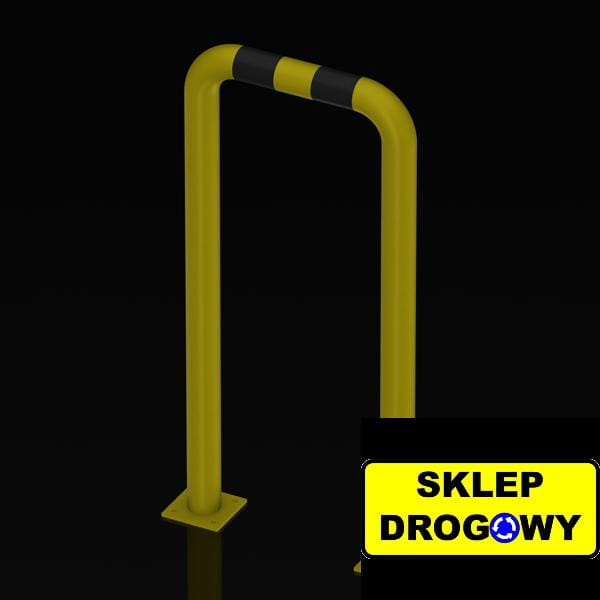 Powierzchnia zabezpieczona jest lakierem proszkowym w kolorze żółtym (RAL 1003), co zwiększa odporność na korozję i uszkodzenia mechaniczne. Czarne pasy z folii odblaskowej pierwszej generacji poprawiają widoczność elementu, szczególnie w warunkach słabego oświetlenia.