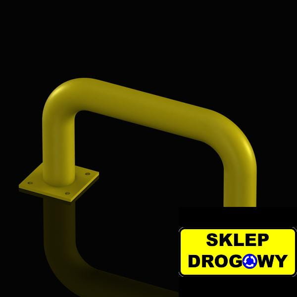 Odbojnica wykonana jest z grubościennej rury stalowej o średnicy 76,1 mm. Konstrukcja opiera się na dwóch nogach zakończonych podstawami o wymiarach 140x140 mm i grubości 8 mm. Każda podstawa posiada 4 otwory montażowe o średnicy 10,0 mm, co umożliwia stabilne przykręcenie do podłoża.