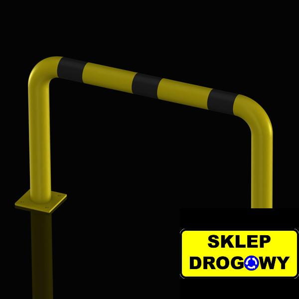 Powierzchnia zabezpieczona jest lakierem proszkowym w kolorze żółtym (RAL 1003), co zwiększa odporność na korozję i uszkodzenia mechaniczne. Czarne pasy wykonane z folii odblaskowej pierwszej generacji poprawiają widoczność odbojnicy w warunkach ograniczonego oświetlenia.