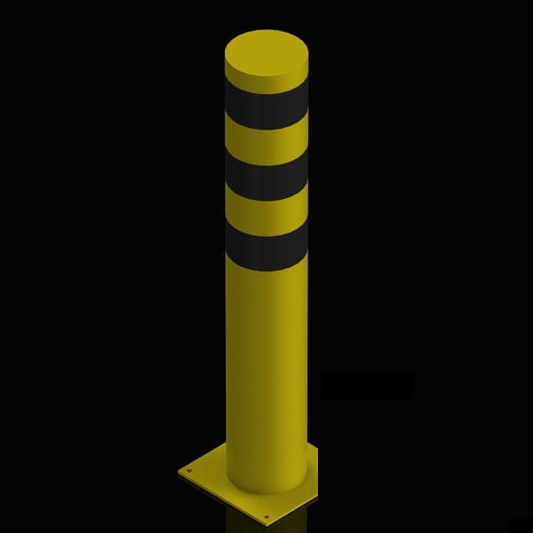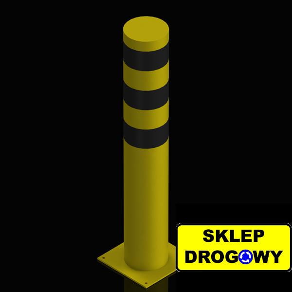 Powierzchnia lakierowana proszkowo w kolorze żółtym RAL 1003 zwiększa widoczność, a czarne pasy z folii odblaskowej I generacji poprawiają bezpieczeństwo.