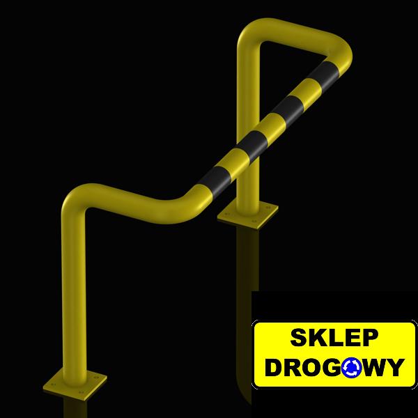 Powierzchnia zabezpieczona jest poprzez malowanie proszkowe w kolorze żółtym RAL 1003, co chroni przed korozją i zwiększa widoczność elementu. Czarne pasy wykonane z folii odblaskowej pierwszej generacji poprawiają bezpieczeństwo użytkowania.