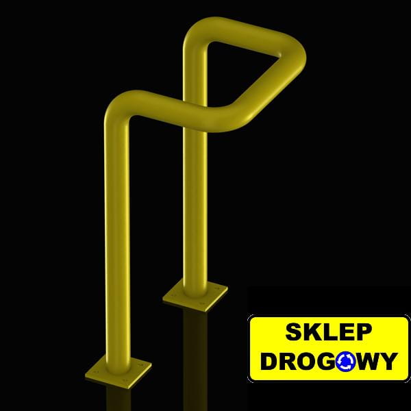 Powierzchnia zabezpieczona jest poprzez malowanie proszkowe w kolorze żółtym RAL 1003, co chroni przed korozją i zwiększa widoczność. Czarne pasy wykonane z folii odblaskowej pierwszej generacji poprawiają bezpieczeństwo użytkowania.