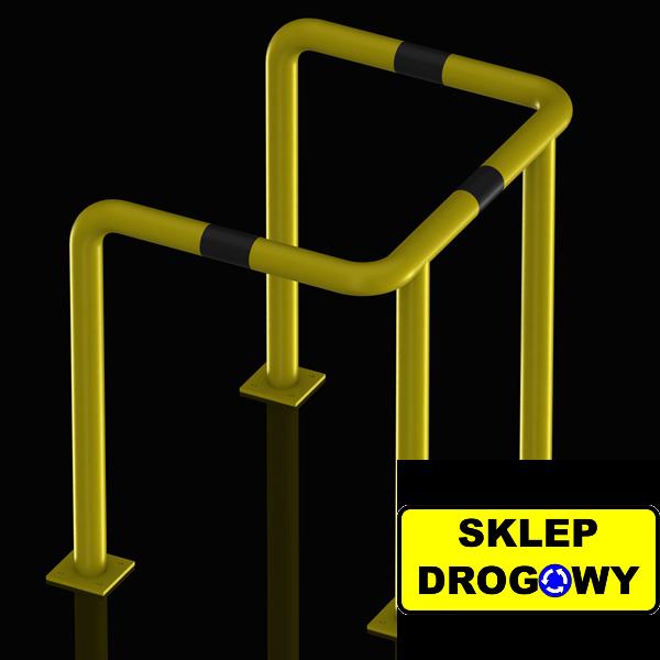 Odbojnica U4 o wysokości 800 mm i wydłużonych ramionach 600 mm zapewnia skuteczne zabezpieczenie narożników, ścian i stref pracy.