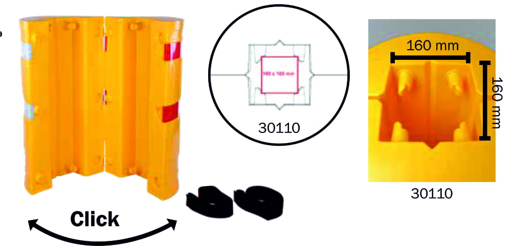 Model przeznaczony jest do ochrony kolumn i słupów w miejscach, w których istnieje ryzyko uderzenia przez pojazdy techniczne, wózki transportowe lub sprzęt pracujący w ograniczonej przestrzeni. Osłona pomaga zabezpieczyć elementy konstrukcyjne oraz poprawia ich widoczność w strefie pracy.