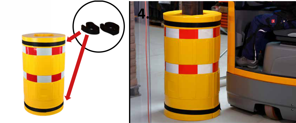 Dwuczęściowa odbojnica z polietylenu o wysokiej wytrzymałości na uderzenia umożliwia szybki montaż przez jedną osobę bez użycia narzędzi i śrub. Mocowanie na wzmocnione rzepy pozwala na sprawne założenie osłony, a dobra widoczność produktu wspiera bezpieczniejszą organizację ruchu wewnątrz i na zewnątrz obiektów.