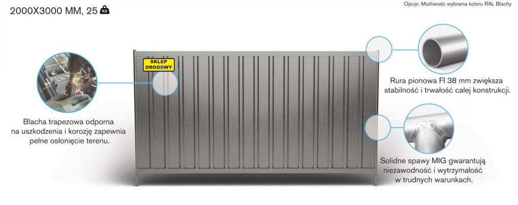 Panel ogrodzenia pełny 3 x 2 m - ogrodzenie tymczasowe