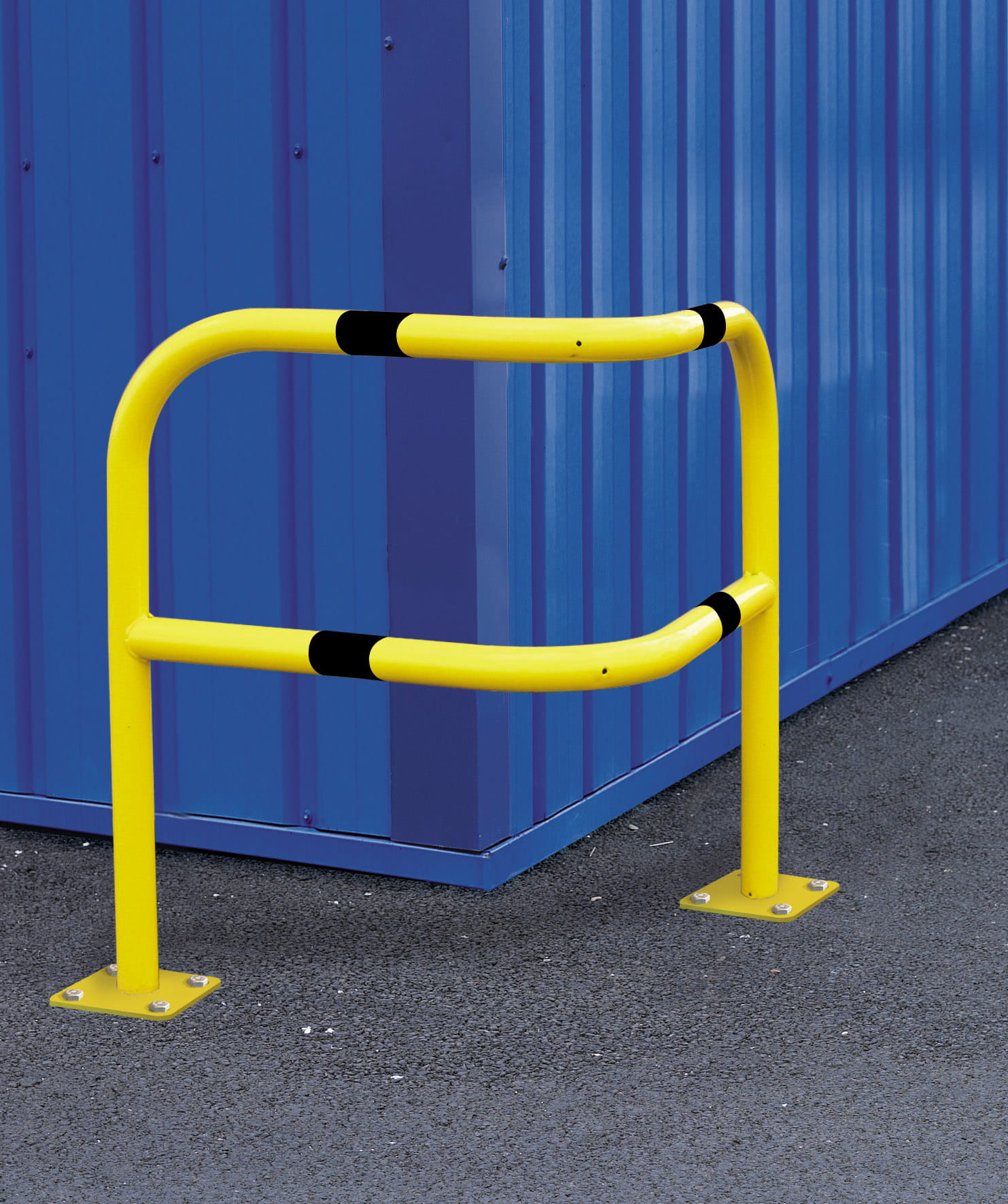 Bariera działa jako fizyczna osłona narożnika. Ustawiona przy krawędzi budynku przejmuje pierwszy kontakt pojazdu z przeszkodą, zanim dojdzie do bezpośredniego uderzenia w ścianę lub narożnik konstrukcyjny. Dzięki temu pomaga ograniczyć skutki najazdów i porządkuje ruch w strefie manewrowej.