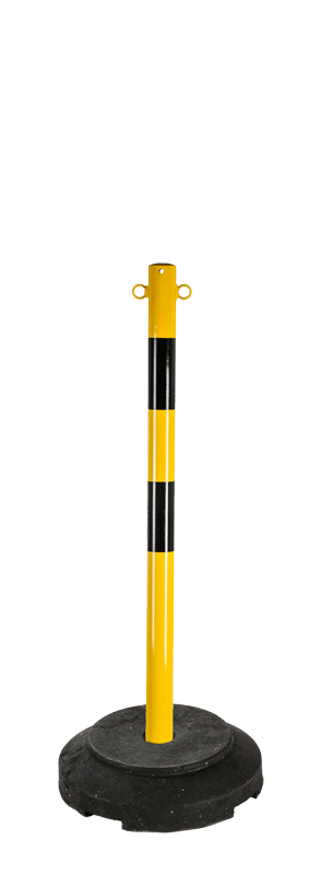 Słupek działa jako pionowy element tymczasowego systemu wygrodzenia. Po osadzeniu w odpowiedniej podstawie tworzy widoczną granicę strefy i może służyć do odseparowania obszaru roboczego, ciągu pieszego albo fragmentu parkingu.