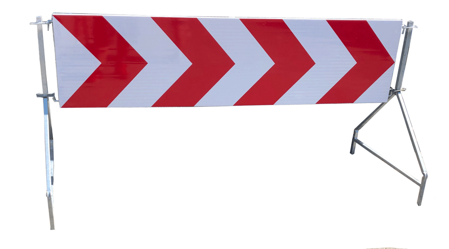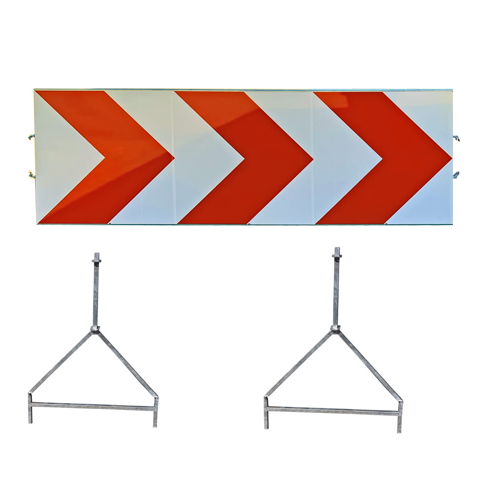 Zestaw: tablica prowadząca U-3 L-1800 (1800×600 mm) + 2 stojaki – montaż na haki, 1 TYP (RA1), 3 czerwone strzały