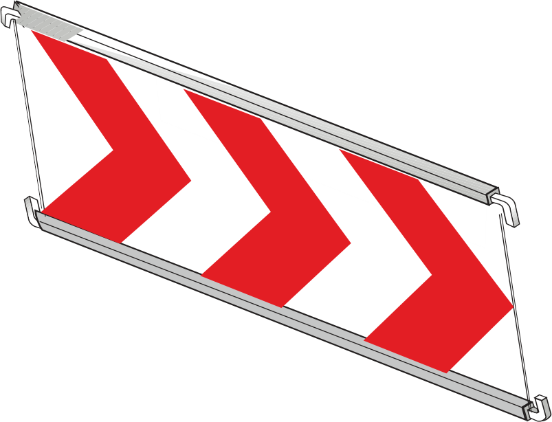 - Tablica prowadząca U-3 L-1800 1800×600 mm (3 czerwone strzały), montaż na haki – 1 szt.