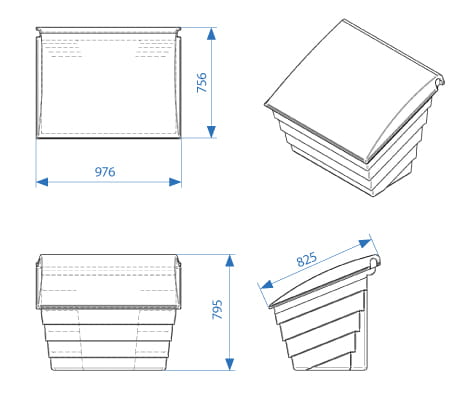 Pojemnik na piasek, sól i sorbent 250 l – skrzynia kanciasta niebieska