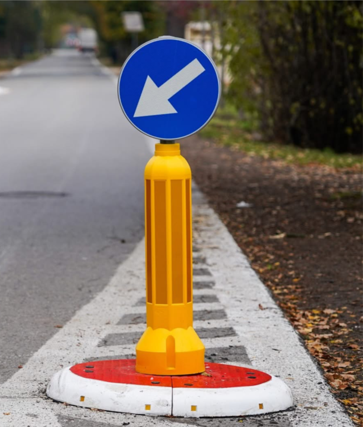 Wyobraź sobie nocną przebudowę skrzyżowania z nową wysepką i azylem dla pieszych. W takich punktach liczy się urządzenie, które kierowca rozpozna natychmiast – bez domyślania się, gdzie kończy się tor jazdy. Pylon U-5a (RA2 / 2 TYP) sprawia, że przeszkoda „wychodzi” w światłach pojazdu z dużej odległości, a kierunek ominięcia staje się jednoznaczny.