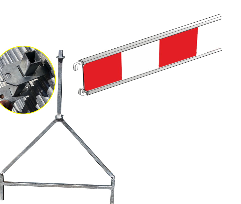 Stojak nie jest elementem odblaskowym – odpowiada za stabilne utrzymanie zapory. Widoczność zestawu zapewnia lico zapór (RA1 lub RA2).