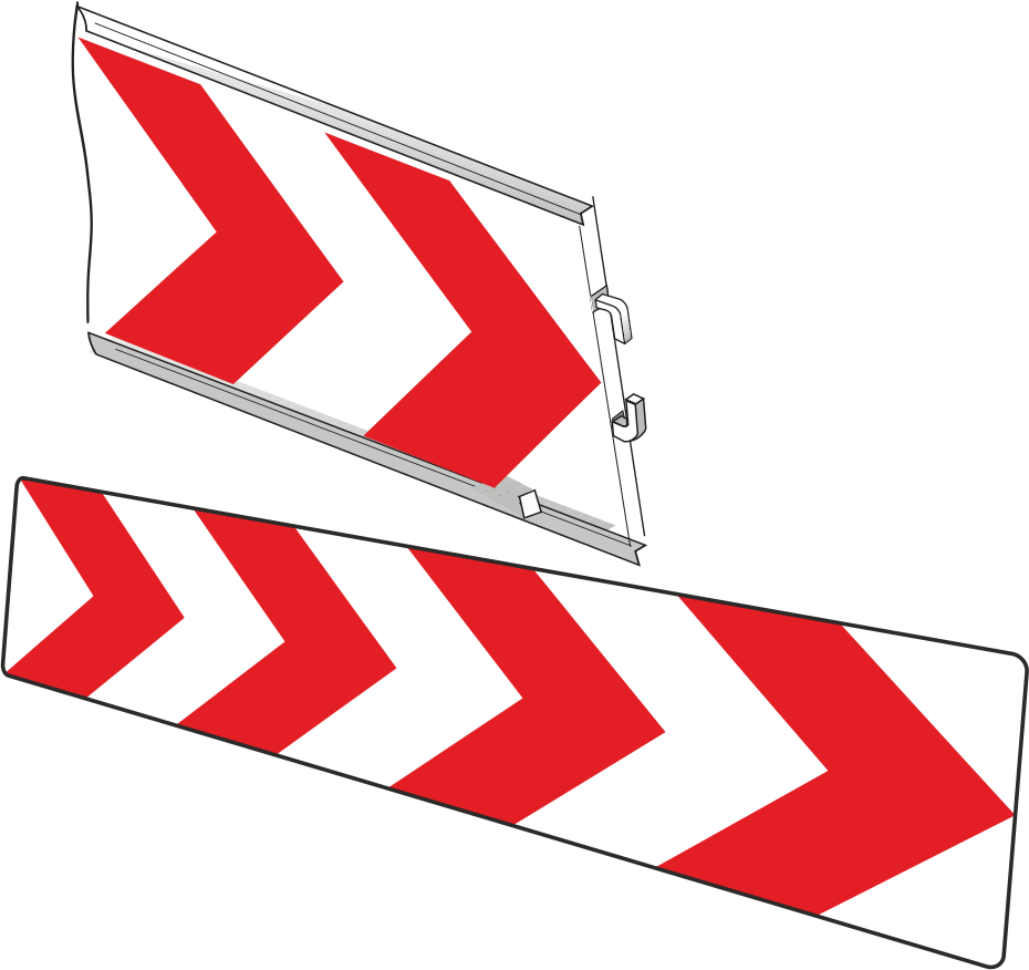 4 czerwone strzały odpowiadają wzorowi L-2400. Tablica jest przygotowana do ustawienia na stojakach dzięki hakom montażowym.