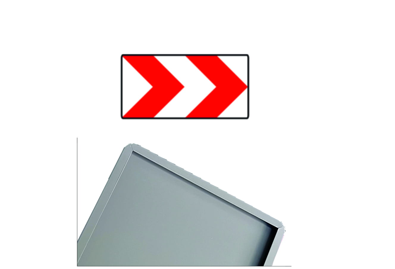 Na łuku drogi powiatowej, gdzie po deszczu odbicia świateł „zjadają” krawędzie jezdni, kierowcy najczęściej mylą tor jazdy właśnie w ostatniej fazie manewru. Tablica prowadząca ciągła U-3 (U-3c/U-3d) 1200×600 porządkuje prowadzenie wzrokowe wyraźnymi, odblaskowymi strzałami. Daje wcześniejszą reakcję i stabilniejszy przejazd, ograniczając nerwowe korekty oraz ryzyko najechań na skrajnię lub elementy infrastruktury.