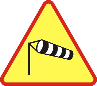 Znak ostrzegawczy A-19 – do oznakowania odcinków autostradowych narażonych na silne podmuchy boczne