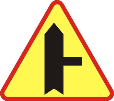 A-6b ostrzega o skrzyżowaniu, na którym droga podporządkowana dochodzi z prawej strony do drogi z pierwszeństwem przejazdu.