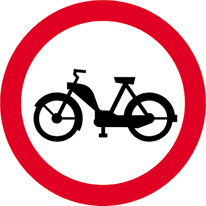 Znak zakazu B-10 – ogranicza wjazd motorowerów na wskazany odcinek drogi.
