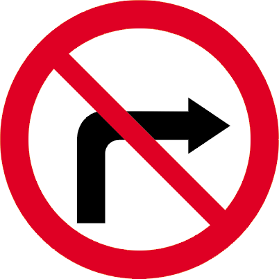 Znak B-22 „zakaz skręcania w prawo” stosuje się w celu zabronienia skrętu w prawo na najbliższym skrzyżowaniu, zwłaszcza wtedy, gdy ogranicza to geometria drogi, mała szerokość jezdni drogi odgałęziającej się lub bardzo intensywny ruch pieszych. Wariant fi 1000 mm to znak wielki (W), przeznaczony do lokalizacji wymagających maksymalnej czytelności.