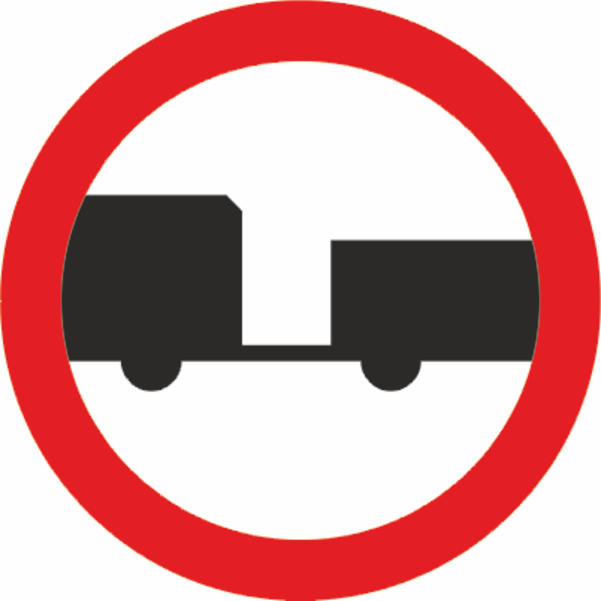 Oznacza zakaz wjazdu pojazdów silnikowych z przyczepami od strony ustawienia znaku. Zakaz dotyczy m.in. samochodów osobowych z przyczepą oraz pojazdów dostawczych i ciężarowych z przyczepą.
