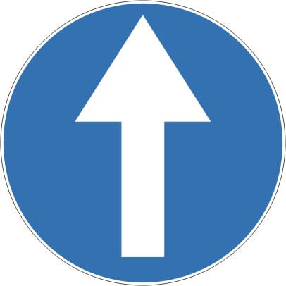 Znak C-5 wielki fi 1000 mm 2 TYP realnie poprawia bezpieczeństwo ruchu drogowego, ponieważ bardzo wcześnie i bardzo czytelnie komunikuje kierowcy obowiązek jazdy wyłącznie na wprost.