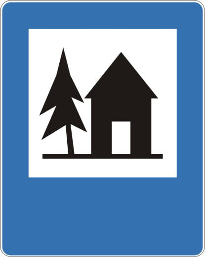 Znak D-33 informuje o lokalizacji schroniska młodzieżowego, czyli obiektu noclegowego tego typu określonego zgodnie z odpowiednimi przepisami lub przez uprawnioną organizację.