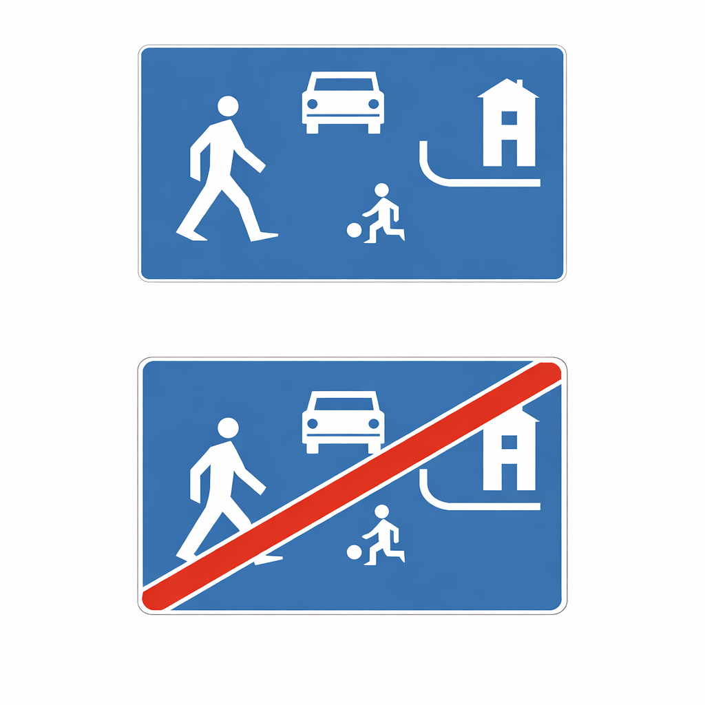 Znak D-41 „Koniec strefy zamieszkania” wskazuje miejsce wyjazdu ze strefy. Informuje kierującego, że od tego punktu przestają obowiązywać zasady właściwe dla strefy zamieszkania i ponownie stosuje się ogólne zasady ruchu drogowego wynikające z Prawa o ruchu drogowym.