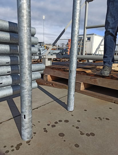 Ogniowe ocynkowanie: Rury stalowe zostały poddane procesowi ogniowego ocynkowania, co zabezpiecza je przed korozją i wpływem warunków atmosferycznych. Dzięki temu konstrukcja zachowuje swoje właściwości nawet w trudnych warunkach pogodowych.