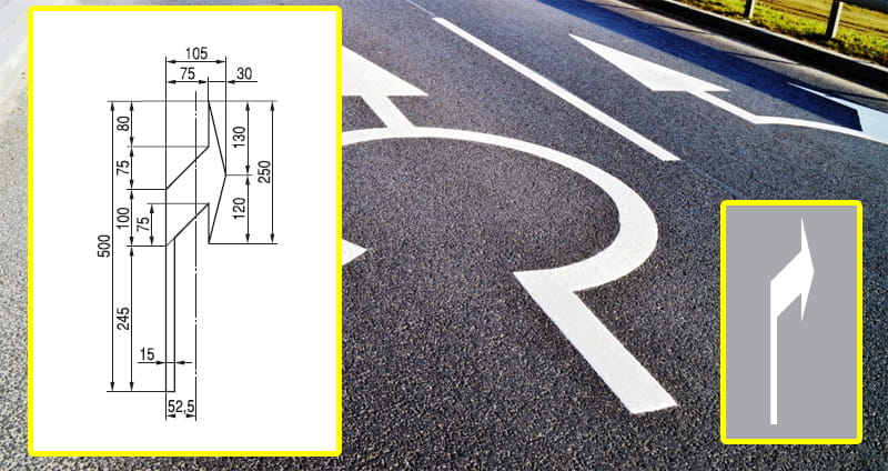 Termoznak P-8d w wersji krótkiej to prefabrykowana strzałka kierunkowa w prawo, przeznaczona do grubowarstwowego oznakowania poziomego. Długość 5000 mm zapewnia bardzo dobrą czytelność oznaczenia na jezdni i wspiera prawidłowe prowadzenie ruchu na pasach przeznaczonych do skrętu w prawo.