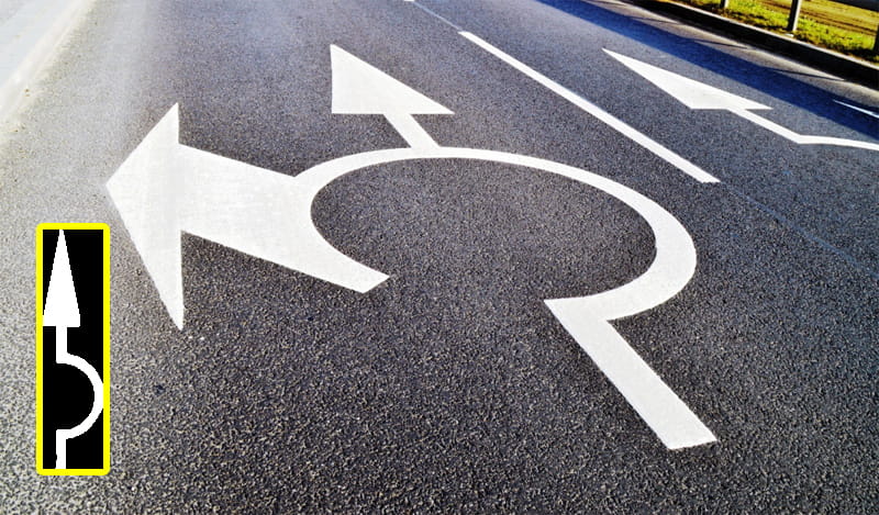 Służy do czytelnego wskazania właściwego toru jazdy i pomaga kierującym wcześniej odczytać organizację ruchu na dojeździe do ronda.