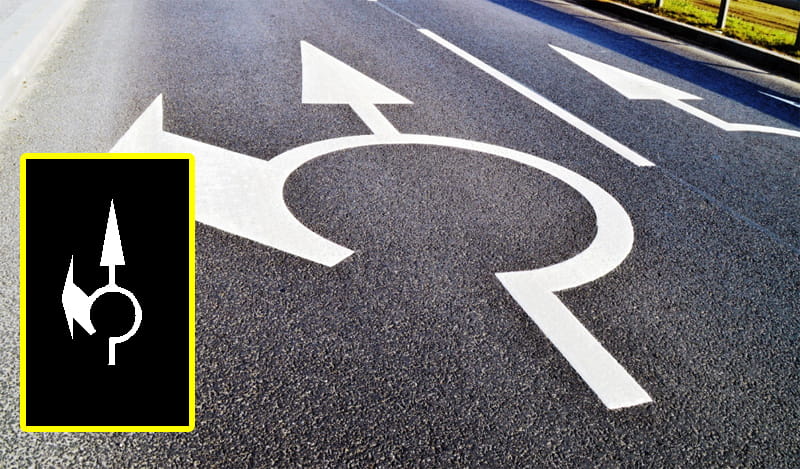 Służy do czytelnego wskazania właściwego toru jazdy i pomaga kierującym wcześniej odczytać organizację ruchu na dojeździe do ronda.