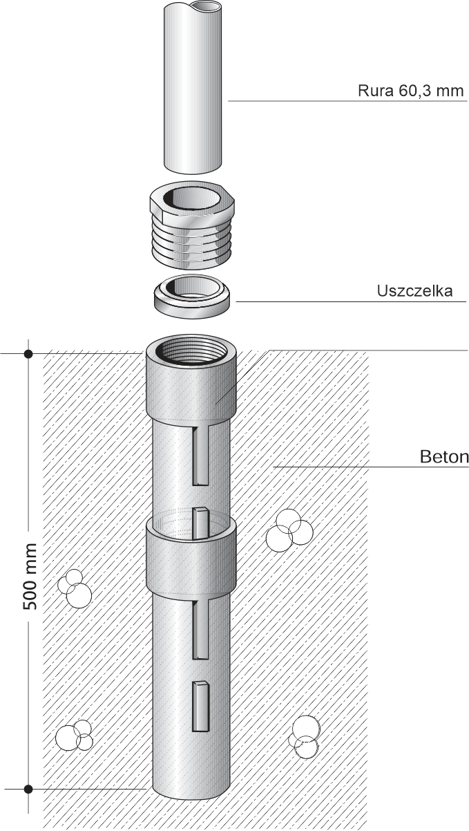 Tuleja została przygotowana do słupków i rur o średnicy fi 60,3 mm, stosowanych w oznakowaniu drogowym.