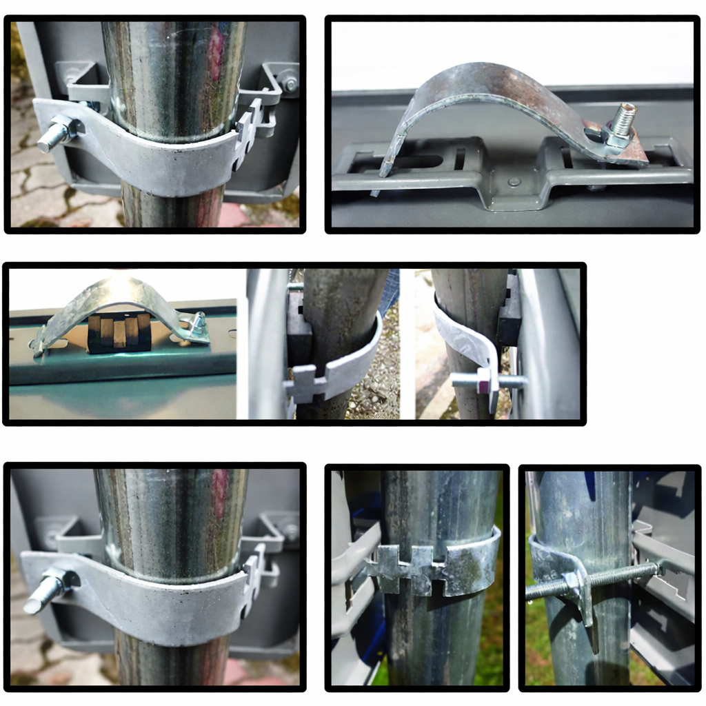 Uchwyt typu ZĄBEK znajduje zastosowanie przy montażu znaków i tablic drogowych na konstrukcjach wsporczych. To praktyczne rozwiązanie dla ekip montażowych oraz firm zajmujących się oznakowaniem, które potrzebują pewnego połączenia znaku z rurą lub słupkiem.
