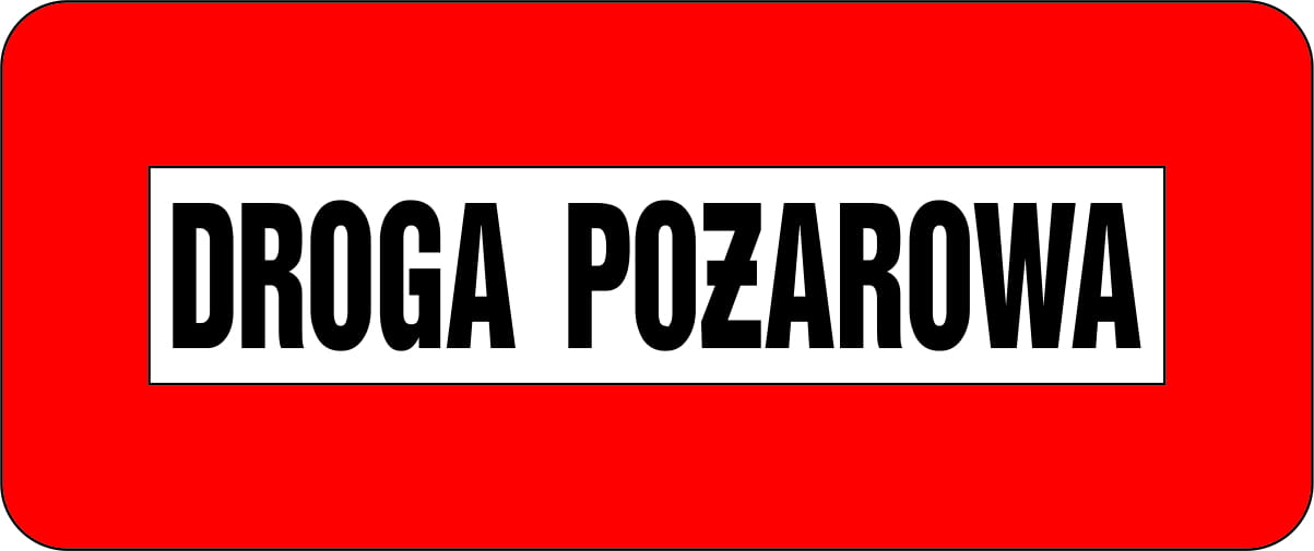 Znak „Droga pożarowa” oznacza trasę, która musi pozostać stale dostępna dla straży pożarnej i innych służb ratunkowych. Jego zadaniem jest czytelne wskazanie odcinka, którego nie wolno zastawiać pojazdami, kontenerami, materiałami ani żadnymi innymi przeszkodami utrudniającymi dojazd do obiektu.